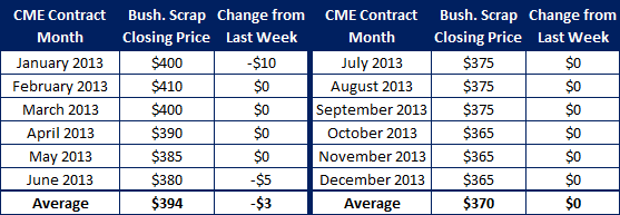 CME Busheling Closing Prices as of 1/10/2013 close: