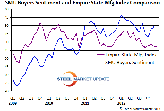 Conditions for New York manufacturers continue to decline at a modest pace according to the Empire State Manufacturing Survey for January 2013.