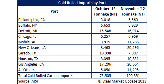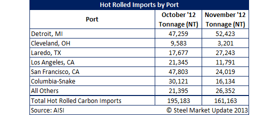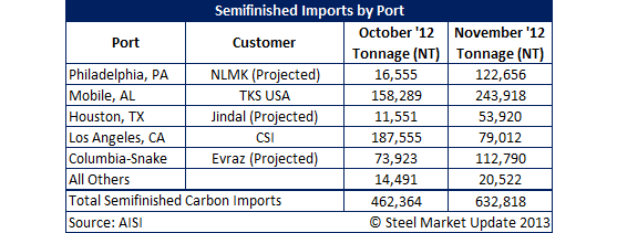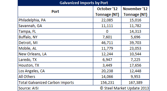 Semi-Finished, HRC, CRC and Galvanized Imports by Port