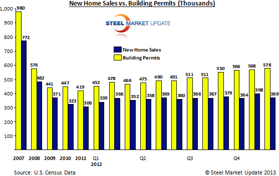 Regionally, new homes sales for December were mixed. The Midwest increased to a seasonally adjusted annual rate of 21.3 percent from November but was -1.7 percent below the annual rate of December 2011. The Northeast rate dropped -29.4 percent in December but was 20 percent above year-over-year. The Midwest grew to a seasonally adjusted annual rate of 21.3 percent from November but was down -1.7 percent from December 2011. The South and West were both down for the month by -8.4 percent and -11.1 percent, respectively, but the South gained 15.6 percent year over year while the West dropped -1.2 percent.
