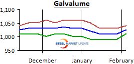 Galvalume .0142” AZ50, Grade 80 Benchmark: SMU Range is $1011-$1041 per ton with an average of $1026 per ton.