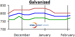 Galvanized .060” G90 Benchmark: SMU Range is $770-$800 per ton with an average of $785 per ton.