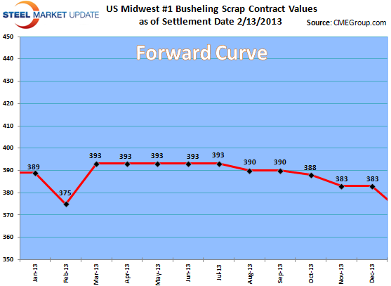 CME Busheling Closing Prices as of 2/13/2013 close: