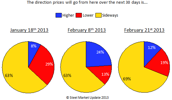 As to the steel community – it sees prices trending sideways over the next 30 days, according to our steel survey results from this past week: