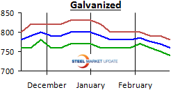 Galvanized .060” G90 Benchmark: SMU Range is $740-$780 per ton with an average of $760 per ton.