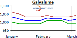 Galvalume .0142” AZ50, Grade 80 Benchmark: SMU Range is $991-$1041 per ton with an average of $1016 per ton.