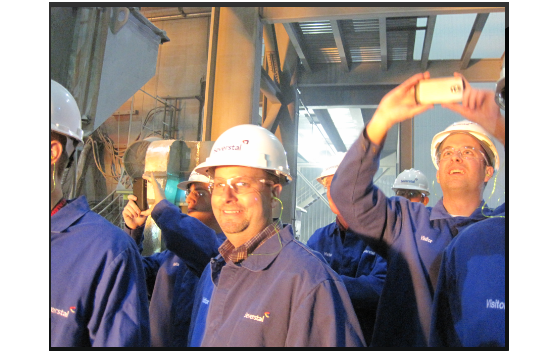 Billowing flames, sparks careening upward like thousands of fireflies, the brilliant blue-white glow of the arc, and heat—intense heat. It is hard to adequately describe the power emanating from the electric arc furnace as one stares at it enthralled. Our Steel 101 class felt that power up close and it was an experience to remember.