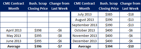 CME Busheling Closing Prices as of 3/20/2013 close: