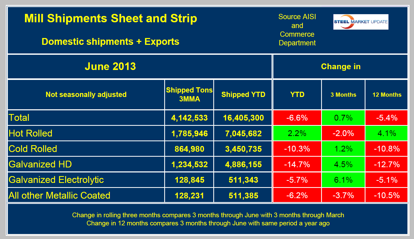 Flat Rolled Shipments down 5.6% During 1st Half 2013
