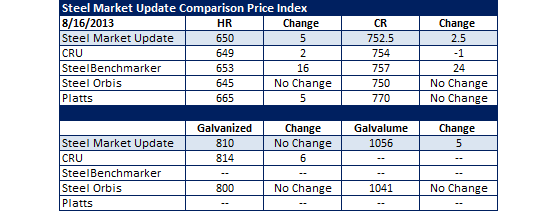 With the exception of SteelBenchmarker, which only produces their indices twice per month, the movement in pricing was relatively modest this past week as we are beginning to sense a period of stability in pricing around the $650 per ton level on hot rolled coil (HRC).
