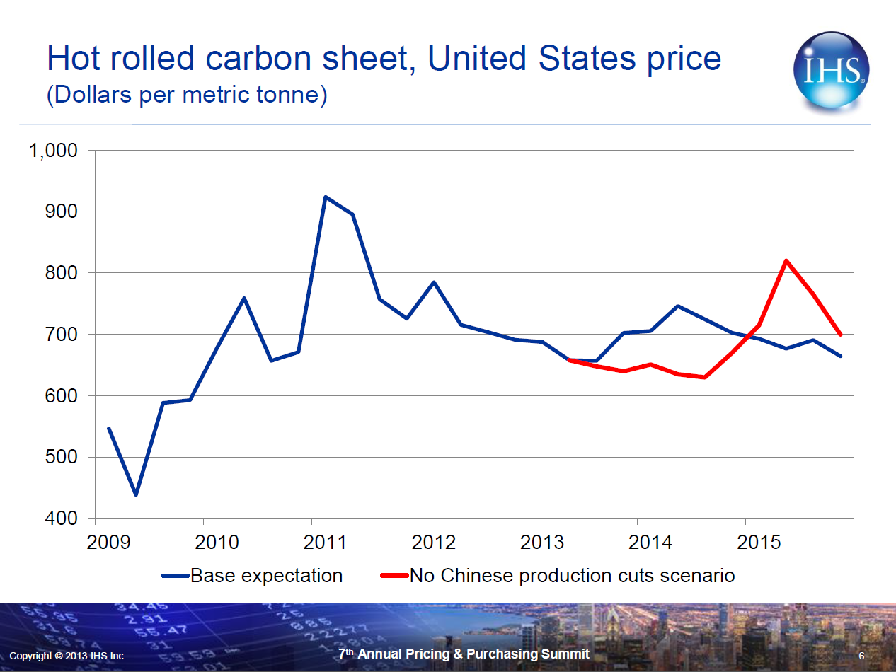 Our last newsletter was interesting enough that I fielded quite a number of phone calls and emails (I take them all and respond to them all). The main point of discussion was regarding the IHS Global Insight article from the presentation given by their steel analyst, John Anton. The essential premise of the presentation being the Chinese steel mills will cut production in the coming months easing the worldwide glut of steel and providing a floor on world prices. In the process North American steel prices are forecast to rise (IHS Global Insight forecast) going into 2014. If excess capacity in China was not reduced their forecast was buyers needed to be concerned about the risk of supply disruptions due to failures of existing mills in Europe or potentially North America.
