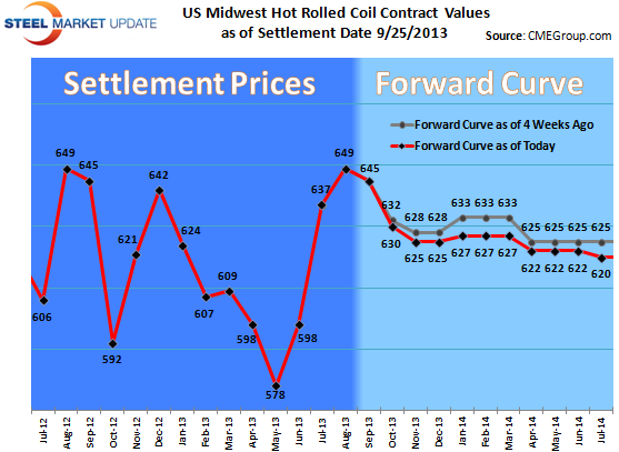 There is a backlog of orders being worked down, more so in HR than in products, but once it is worked down, we are back to fundamentals. Inventory levels being lower than normal can be a factor in a rising price market with increasing orders, but will have no logical effect on pricing in a downward pricing market with stable to lower orders. A speculative unit is a speculative unit regardless of inventory. Can actions change the course of price discovery? Only for short periods if the fundamentals run contrary to those actions, and usually with consequences later on. For the 22 years I’ve been in commodities, my experience is that “this time” is never different, and that commodity markets always have cycles. A more permanent cycle shift higher or lower, like in 2007, can only happen when fundamentals are aligned with that shift. That is not the case today. So in this author’s opinion, no, this time is not different. With widespread reports of OEM’s booking deals end year and into next year at May ’13 type prices, and at least two mills already offering CRU less 5% index deals, I’d say the market already senses the same. Market share is still too important in an oversupplied market.