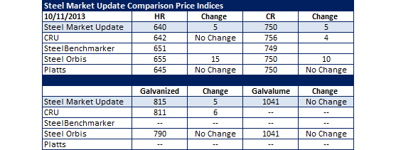 There was little to no change with most of the indices this past week. What might have been the most noteworthy is Steel Orbis is no longer the lowest priced on benchmark hot rolled. Also of note is Platts is no longer the highest priced index for HRC. Will this be the week when prices breakout of their narrow range?