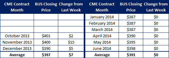 We have seen further short cover in the nearby months with transactions between $636 and $655 go through, on November mostly, as time creeps on and pushes any dip further out. Ca’ 14 mos still in the $635-645/ST zone depending on period. Meanwhile nothing seems to be moving in the market to change this gridlock. We all wait, except for those in the import sector, which is gaining traction on Q1 deals as the foreign differential becomes too enticing for some in a market where domestic prices are holding up for now.
