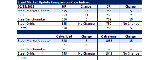 The domestic mills pushing for customers to switch to Platts indices may shudder when they realize that Platts benchmark hot rolled coil index is the lowest of the five followed by Steel Market Update.Even so, all of the indices are now within $6 per ton of each other. The average price for hot rolled, using all five indices, is $653.80 per ton.