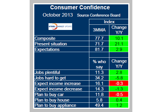 SMU comment: Consumer confidence drives consumer spending which accounts for almost 70 percent of GDP. The growth of steel consumption is closely related to the growth of GDP though steel is much more volatile. Consumer confidence is a strong leading indicator of future steel demand.