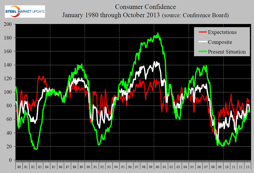 SMU comment: Consumer confidence drives consumer spending which accounts for almost 70 percent of GDP. The growth of steel consumption is closely related to the growth of GDP though steel is much more volatile. Consumer confidence is a strong leading indicator of future steel demand.