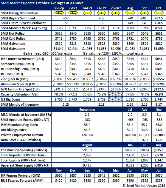 MSCI flat rolled inventory levels came in at 2.1 months while SMU inventory levels were measured at 2.17 months (average of the two surveys taken during the month of October).