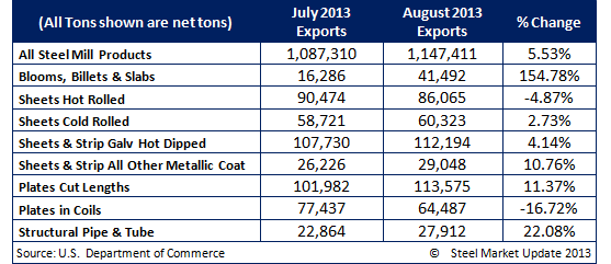 Steel Exports Rose in August