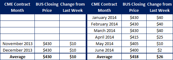 Iron ore prices have continued to be strong as Rebar futures have bounced off recent months lows last week and spot steel in China continues to go higher. Over the past couple of weeks iron ore prices have pushed up around $5/ton down the curve with Q1 trading around $130, Q2 $122 and the cal 14 at $121. Volumes remain very strong both in the physical market as well as the futures market as ore record level of ore has moved out of Australia’s Port Hedland in October. There is still some wariness in the market as to whether prices can top $140 this year before retreating. As always time will tell…
