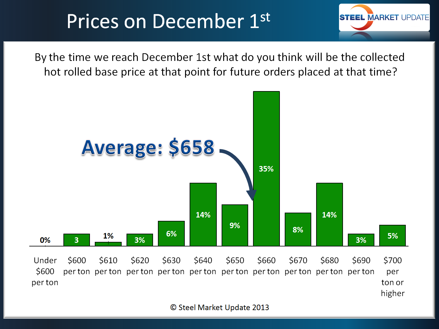 When we asked our respondents where spot pricing would be for new benchmark hot rolled orders at the beginning of December the levels suggested were essentially where spot prices were measured this week.