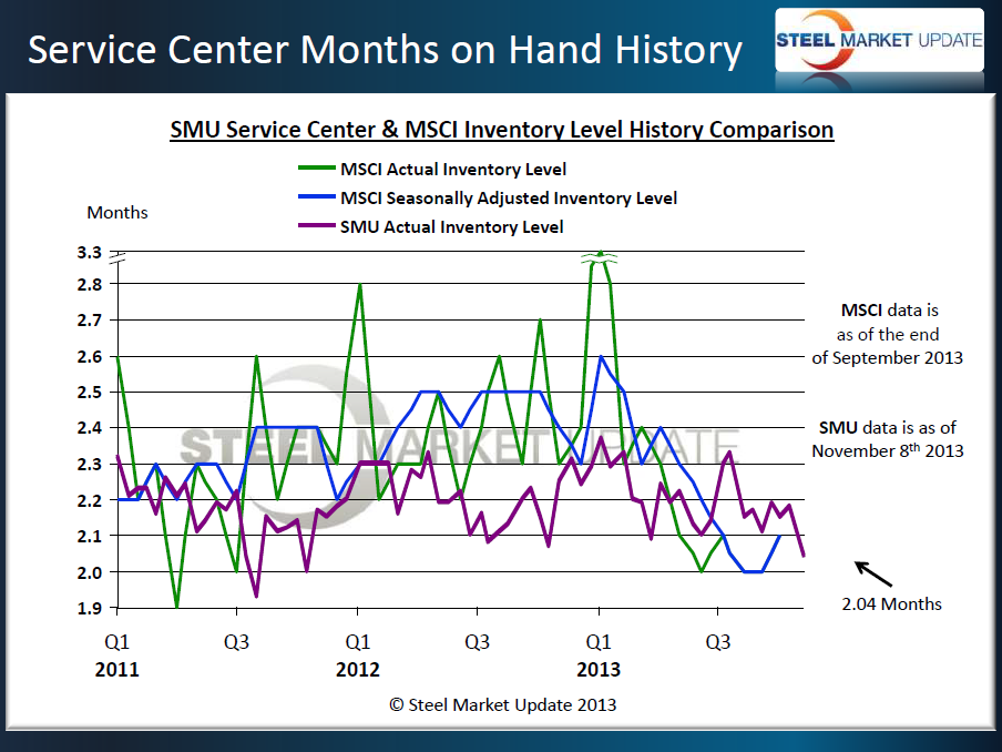 In our most recent survey results we found the service centers inventories as averaging 2.04 months which is the lowest level we have found since 4th Quarter 2011.