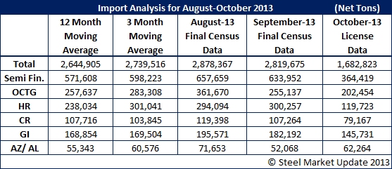 October imports are forecast to be 1,682,822 net tons. However, the DOC reported that they did not collect license data from October 1st through October 16th. According to the DOC website the September and October license data are incomplete.