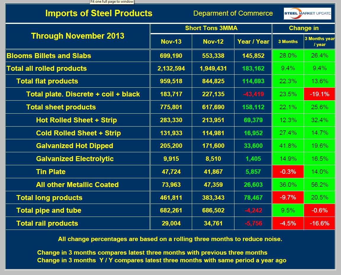 Imports of Semi Finished and Hot Worked Steel through November 2013