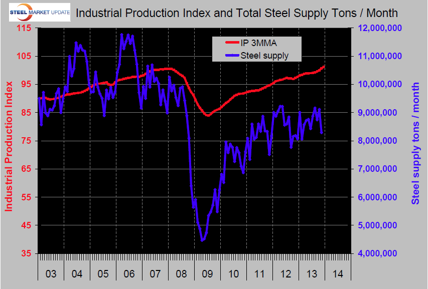 SMU Comment: prior to the recession there was a reasonable correlation between industrial production and steel supply though steel was very much more volatile in this comparison just as it is against GDP (Figure 3). We have many indicators that suggest that steel supply is much lower than it should be at this stage of a recovery and IP is one of them. We believe the main reason for the discrepancy is the continued low activity by historical standards of the major sectors of construction. This includes, housing, non residential buildings and infrastructure.