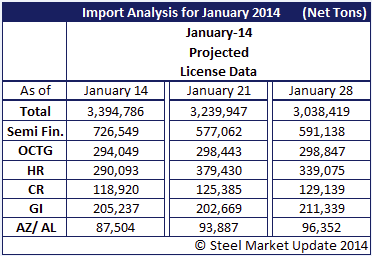 David Phelps warned our readers not to put too much stock in the U.S. Department of Commerce license data, which he felt could be very misleading. Our initial forecast for January steel imports produced through the aid of the import license data from the 14th and again on the 21st of January indicated a possible surge of imports to about 3.2 million net tons.