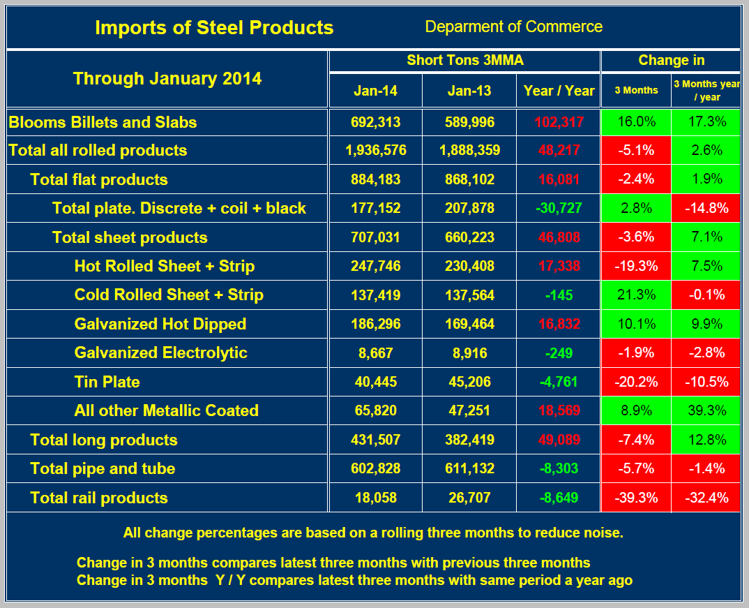 Semi-Finished and Hot Worked Steel Imports through January 2014