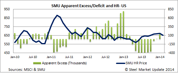 We believe inventories to be basically balanced at the service centers even with the +150,000 ton Excess which was slightly higher than our forecast of +36,000 tons which we shared with our Premium Level members last month. We share our current forecast at the end of this article (along with our prior forecast for those keeping score). Not to make excuses but we believe our forecast would have been dead on for January if not for the lost shipping days service centers had to endure due to weather related events.