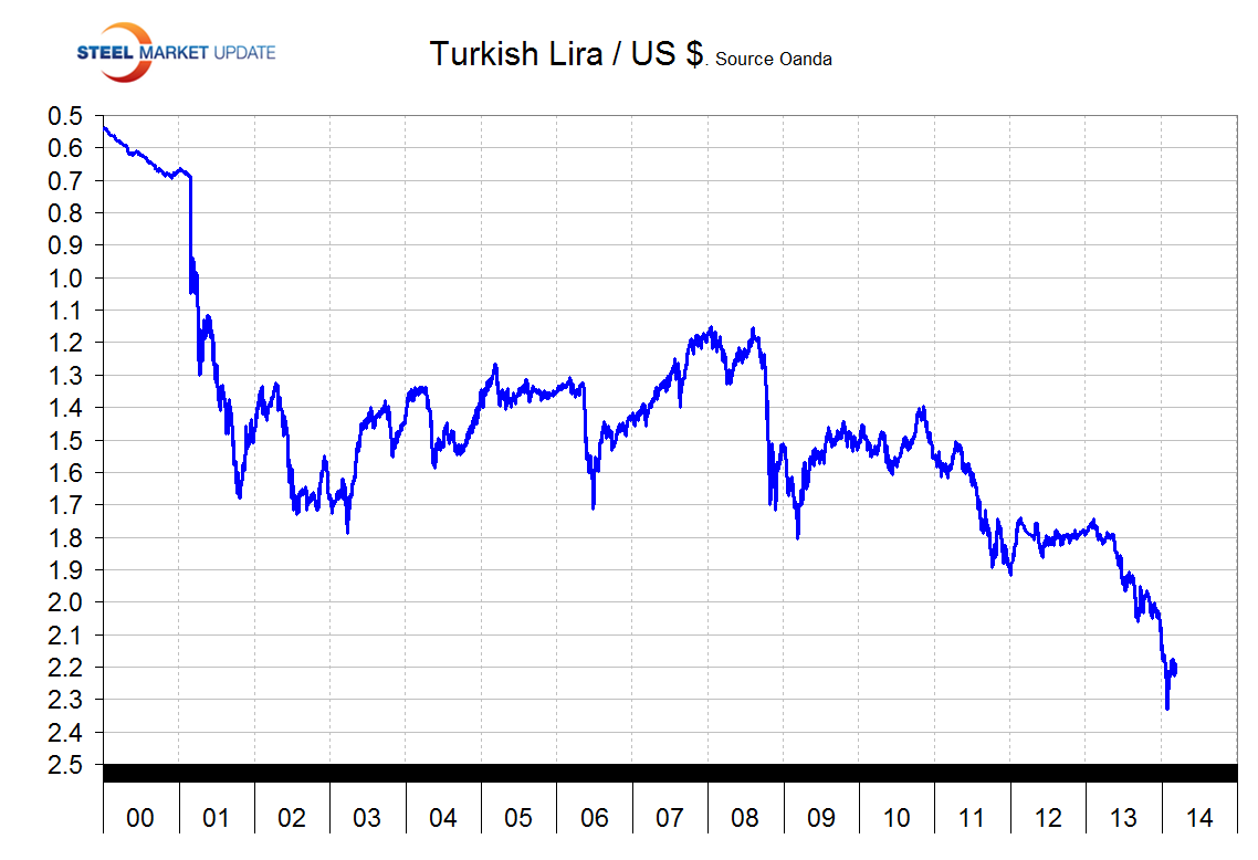 The Turkish Lira has stabilized and appreciated slightly in the last month and now stands at 2.203 to the $ (Figure 2).
