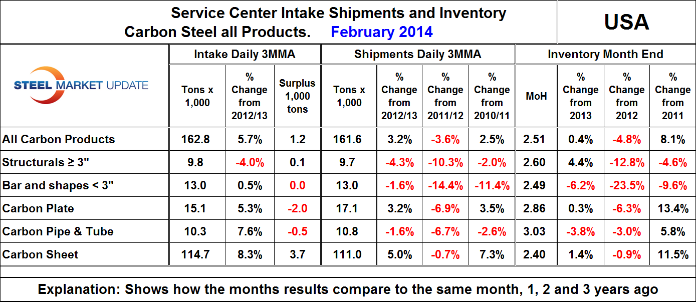 Service Center Intake, Shipments and Inventory in February 2014