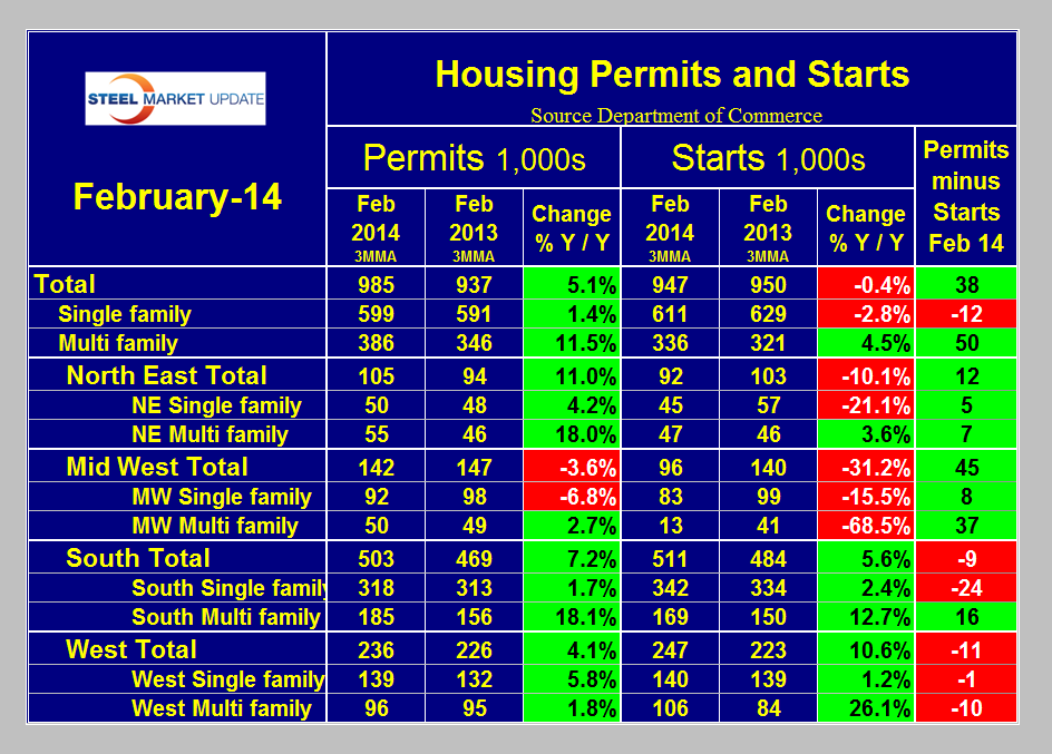 Housing Starts and Permits in February 2014