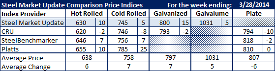 So, when you look at the various indices the very first thing which should leap out and hit you is each index has a different reference point for hot rolled coil this past week. We saw HRC prices reported from a low of $620 from CRU to a high of $655 at Platts and all points between (SMU and SteelBenchmarker).