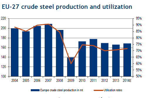 Overall steel demand is weak but an improvement in March sales in the auto industry is a positive sign for the steel industry. BofAML forecasts 3.3 percent growth for EU autos for 2014. Construction remains weak but better than 2013.