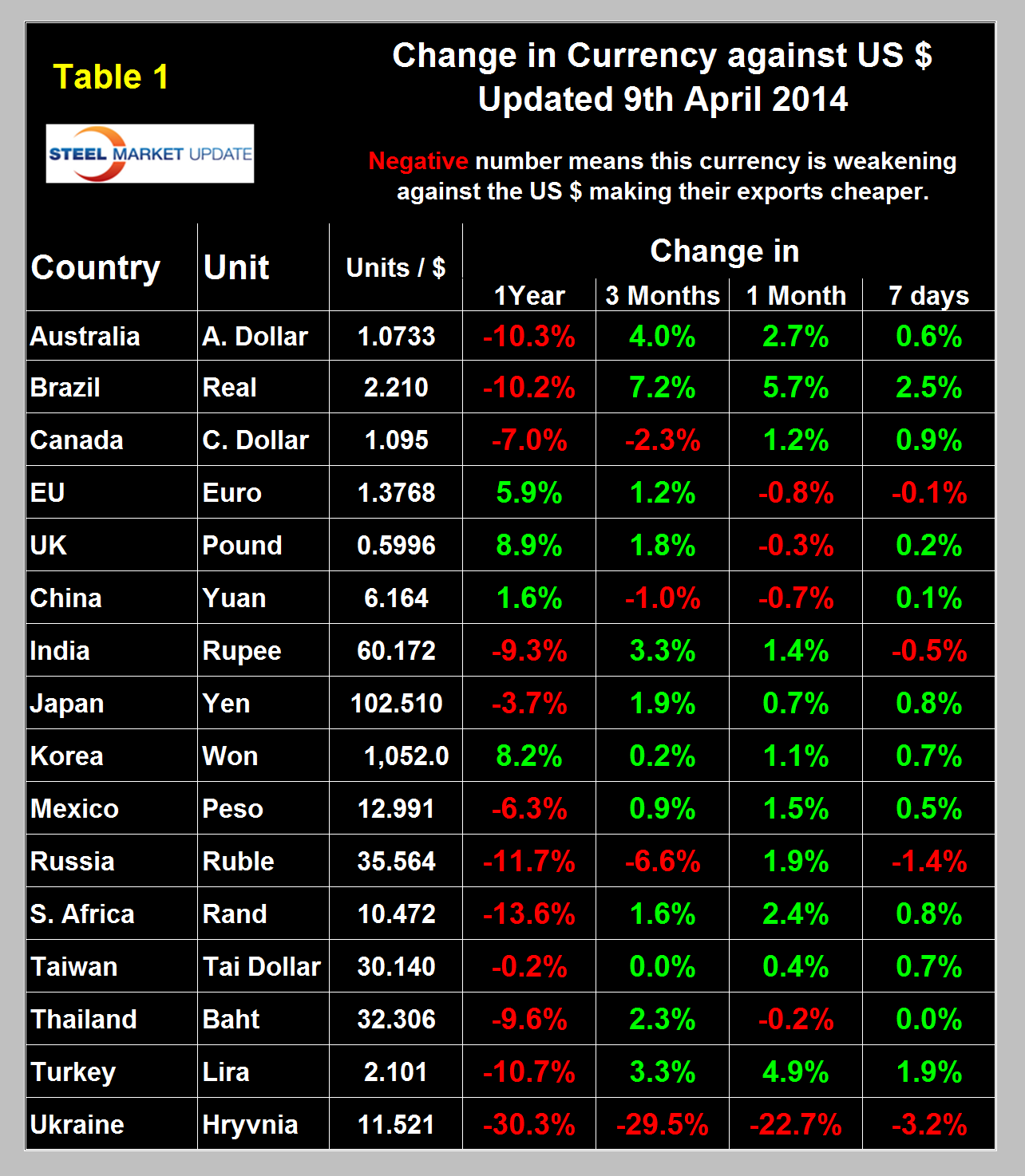 Currency Update for Steel Trading Nations - April 2014