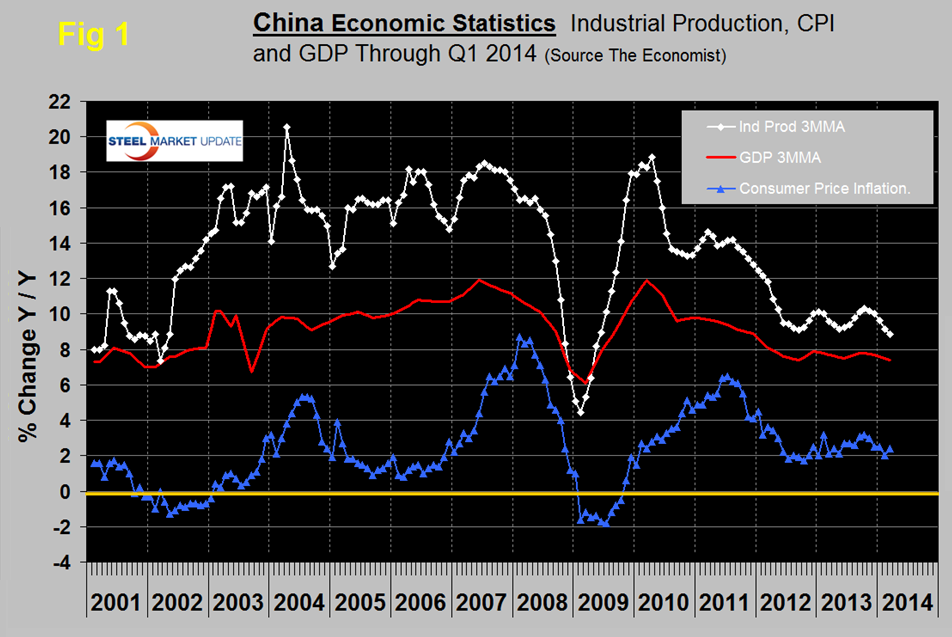 From what we understand the Chinese economy is becoming more consumer oriented and less dependent on fixed asset expenditures which are the largest consumer of steel products. If domestic Chinese steel demand declines will capacity be reduced or will companies increase exports to relieve the pressure. As we see it there are two underlying and conflicting motivators. These are the environment and employment. We have no idea which of these will prevail but what follows here is some macro-economic data that we track to try to get a view of the future.
