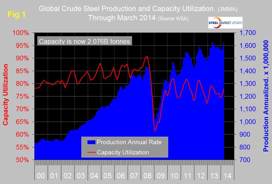 Global Steel Production and Capacity Utilization, March 2014