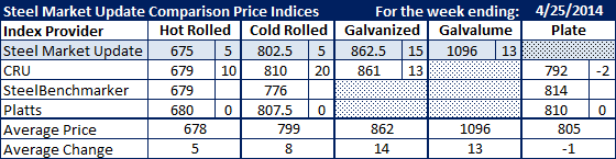 For the first time in a long time all of the indexes followed by Steel Market Update are within $5 per ton of one another when it comes to hot rolled coil.