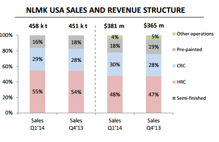 NLMK Indiana ran at an 88 percent capacity in the first quarter, up from 85 percent in Q4 2013.