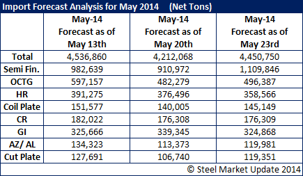 Based on past experience and the latest license data, Steel Market Update believes the month of May will see steel imports break 4.0 million net tons.