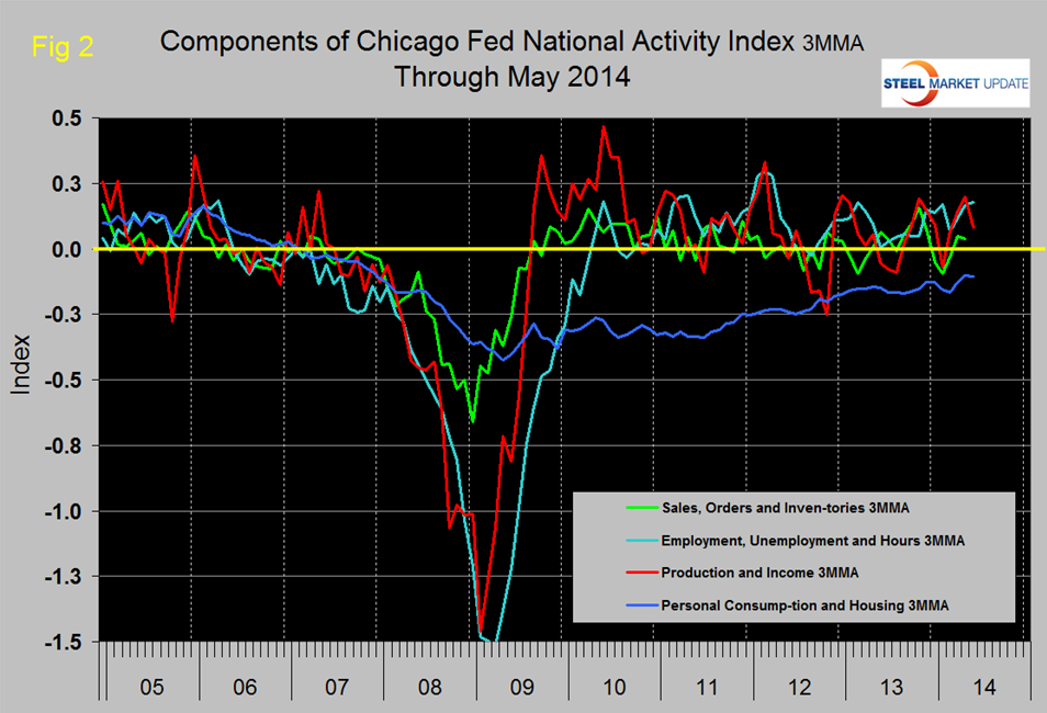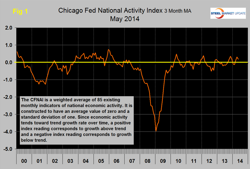 The following is an abridged version of the Chicago Federal Reserve statement plus our own graphical analysis. The Chicago Federal Reserve National Activity Index (CFNAI) is an excellent reality check for much of the economic analysis that we routinely provide in The Steel Market Update. An explanation of the Index is provided at the end of this piece.