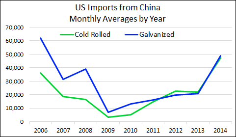 In the meantime, we evaluated the Chinese cold rolled and galvanized exports over the past 8 years to see if what is occurring now is indeed a surge and something of concern to the domestic steel industry.