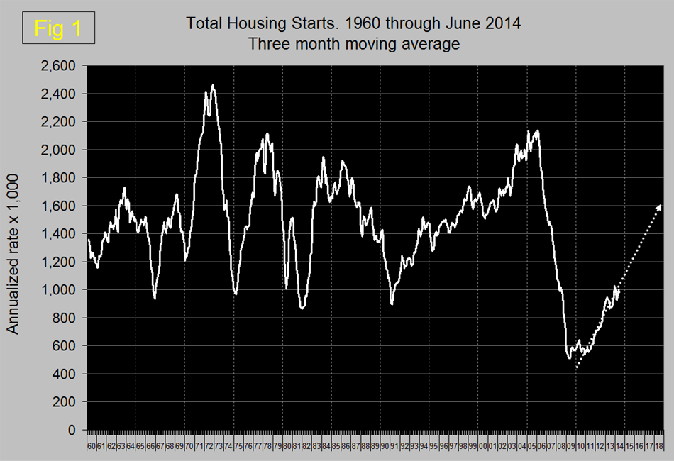 A first glance suggests that the June housing starts report was depressing, total starts at 893,000 were down from 985,000 in May and 1,063,000 in April. However the three month moving average (3MMA) in June was 980,000 which was exactly the same as April. Not progress but not a calamity either. Even on a 3MMA basis housing starts are extremely erratic, (Figure 1). The trajectory is still on track to reach 1.6 million by the end of 2018.