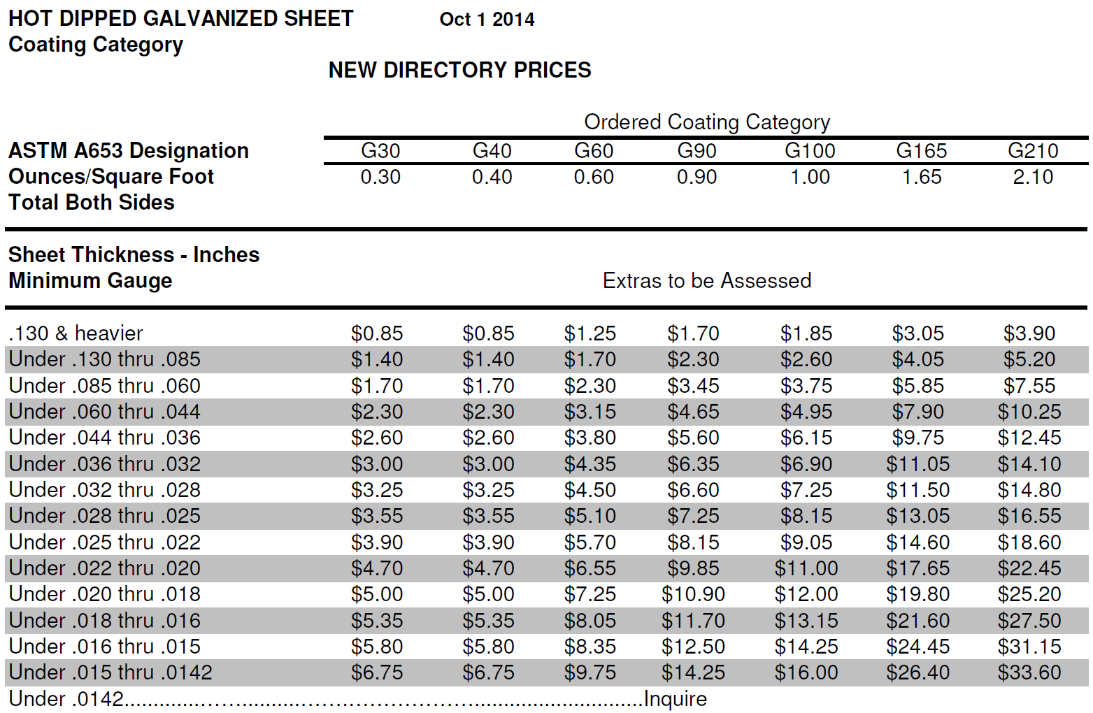 U.S. Steel has begun to inform their customers of their intention to raise their zinc coating extras effective October 1, 2014. Unlike Nucor, USS did not go back to their 2011 price extras.