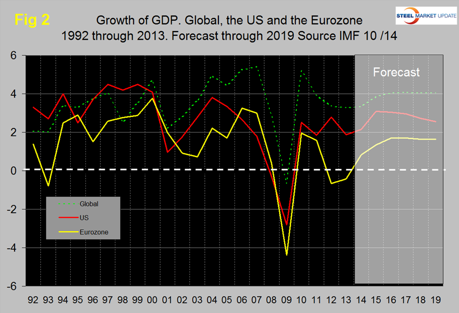 The International Monetary Fund (IMF) made the following statement this week: “Despite setbacks, an uneven global recovery continues. Largely due to weaker-than-expected global activity in the first half of 2014, the growth forecast for the world economy has been revised downward to 3.3 percent for this year, 0.4 percentage point lower than in the April 2014 World Economic Outlook (WEO). The global growth projection for 2015 was lowered to 3.8 percent. Downside risks have increased since the spring. Short term risks include a worsening of geopolitical tensions and a reversal of recent risk spread and volatility compression in financial markets. Medium-term risks include stagnation and low potential growth in advanced economies and a decline in potential growth in emerging markets. Given these increased risks, raising actual and potential growth must remain a priority. In advanced economies, this will require continued support from monetary policy and fiscal adjustment attuned in pace and composition to supporting both the recovery and long term growth. In a number of economies, an increase in public infrastructure investment can also provide support to demand in the short term and help boost potential output in the medium term. In emerging markets, the scope for macroeconomic policies to support growth if needed varies across countries and regions, but space is limited in countries with external vulnerabilities. And in advanced economies as well as emerging market and developing economies, there is a general, urgent need for structural reforms to strengthen growth potential or make growth more sustainable.”