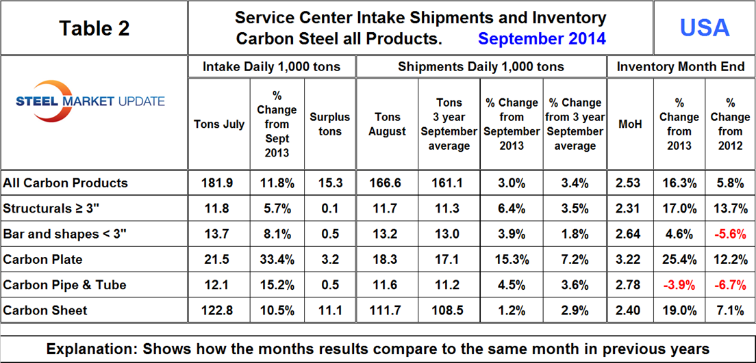 Service Center Intake, Shipments and Inventory September 2014