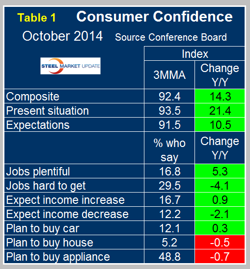 The monthly Consumer Confidence Survey, based on a probability-design random sample, is conducted for The Conference Board by Nielsen, a leading global provider of information and analytics around what consumers buy and watch. The cutoff date for the preliminary results was October 16.